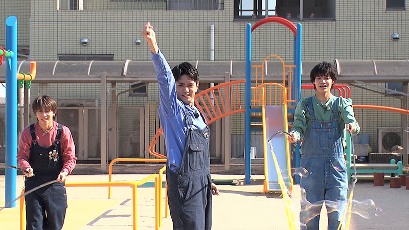 いよいよ保育園の園児たちを前に、3人がシャボン玉ショーをスタート。「Aぇ! groupを知ってるかな~?」という問いかけには「知らん!」と答える園児たちも華やかなショーには大歓声!そして、シャボン玉おじさんが考えた妻への感謝のシャボン玉サプライズとは?