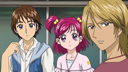 するとそのとちゅう、じょせいきしゃがざっしにのせるためのシャシンをとらせてほしい、とカメラをむけてきたんだ! なつはきっぱりことわるんだけど、ここだはシャシンくらいならとオッケーをだすの。 でも、きしゃがのぞみをジャマモノあつかいしたため、おこったここだもおなじくシャシンをことわるんだ。 そんなここだに、のぞみはちょっぴりドキドキするの☆