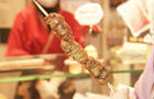 串にささった「ぬれおかき」は自然薯が入っていて大人気。