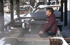 山田温泉バス停近くの土産物屋さん。このお店で手作りしている山田温泉まんじゅうは窓越しに