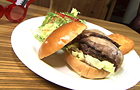 阿蘇の名産「あか牛」と地元産の野菜を使ったハンバーガーが人気。