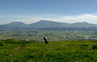 標高約936mに位置する北外輪山の展望所。眼下に広がる阿蘇谷と、その向こうにある阿蘇五岳(あそごがく)を一望できる。