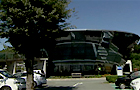 全面鏡張りで近未来的な外観の道の駅。1階では、小国ジャージ牛乳を使った乳製品や、特産品を販売。