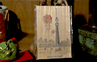 ハガキサイズの「桐」の板に、箔押しの技術を用いてご主人手描きのスカイツリーを印刷した「桐はがき」を販売。メールが主流の時代に木のぬくもりで心温まるスカイツリー土産として人気。