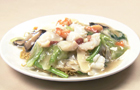 吉祥寺で26年、店を構える本格中華の名店。おすすめはランチの「石垣島のハタの切り身と海の幸入りダッタン焼きそば」。パリパリの麺にシーフードのあんかけが乗っている。そのまま食べても美味しいが、甘酢をかけるとさらに美味しさが増す。ハタは石垣島の漁師から直接仕入れている。