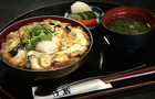 人気の「江の島丼」は「親子丼」の鳥肉を江の島の特産「サザエ」にする発想から生まれた名物どんぶり。