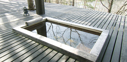 総面積3万坪弱の敷地内にかやぶき屋根の母屋を中心とし、源泉かけ流しの内風呂、貸切露天風呂、御食事処など全30棟の施設が全長約300メートルの渡り廊下で結ばれている宿。