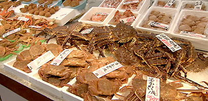 地元稚内の新鮮な海の幸が集まる市場。お土産物も充実していて、連日多くの観光客で賑わっている。