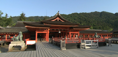 593年に創建、1168年に平清盛が現在の姿に改めたと伝わる。海の上に建ち、平安時代の寝殿造りの粋を極めた建築美が特徴。満潮時、干潮時では全く異なる姿を見ることができる。