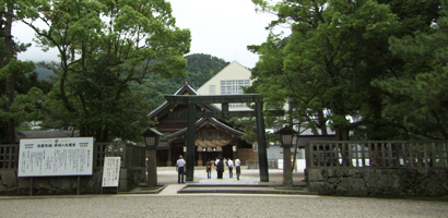 因幡の白兎神話の主人公である大国主大神(オオクニヌシノミコト)を祀る神社。縁結びの神様として知られ、良縁や幸福を願いに全国から多くの人々が訪れる。なお、現在社殿は平成の大遷宮により屋根の葺き替え作業中で、2013年まで見ることができない。