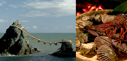 二見浦にある縁結び、夫婦円満、交通安全などに御利益のある神社。本殿のすぐそばには夫婦岩があり、