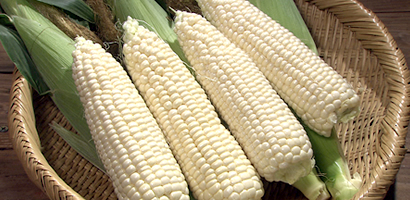 7月中旬から下旬まではピュアホワイトという白い品種のトウモロコシを栽培している。ピュアホワイトは、生でも食べられる糖度18度の甘いトウモロコシ。他にも、トマト、カボチャなどを栽培。