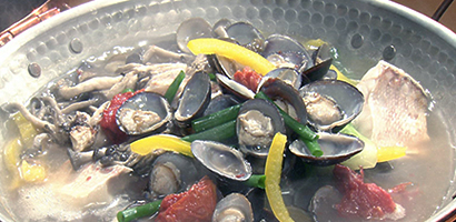 約220年以上続く出雲そばの老舗。出雲そばは出雲産のそばの実を殻ごと挽いているので色が濃いのが特徴。「縁結びセット」は出雲が発祥のぜんざいがついたセット。ぜんざいにはそば湯を入れ、団子にはそば粉を使ったそば屋さんならではのぜんざいになっている。
