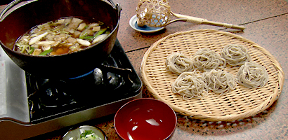 松本市西部、奈川にあるそば店。奈川は標高約1200mの高地で、澄んだ空気と冷涼な気候ゆえ、夏でもそばが収穫できる。名物のとうじそばは、鴨やきのこ、山菜などが入った鍋に、とうじかごに一口大に分けられたそばを入れ食べる郷土料理。
