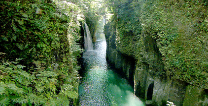 阿蘇火山活動の噴出した火砕流が五ヶ瀬川に沿って帯状に流れ出し、急激に冷却されたために柱状節理の懸崖となった渓谷。高さ80m〜100mにも達する断崖が約7kmにわたって続く、国指定の天然記念物。貸しボートで名勝「真名井の滝」に近づくことができる。