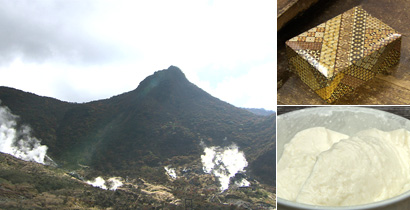 箱根を代表する景勝地。山肌のおよそ80ヶ所から白い噴煙を上げている。名物の黒玉子は、大涌谷の硫化鉄が卵の殻に付着したことで黒くなったもの。1個食べると寿命が7年延びると言われている。