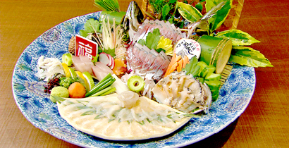 日出町の名産である城下かれいを頂けるお店。別府湾には真水が湧くところがあり、その水域で豊富なエサを食べて育つ城下かれいは、上品な味わいが特徴。煮付けやお寿司など8品が並ぶコースが味わえる。