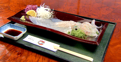 昭和44年(1969年)創業、イカの活き造り発祥の店と言われている。店内には多くの生簀があり、玄界灘の荒波に揉まれたイカを味わえる。