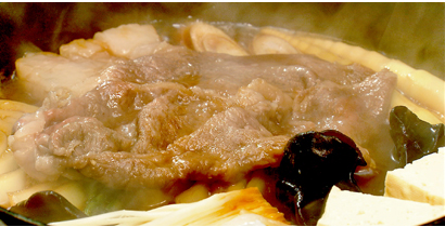 2階にあるお食事処では米沢牛を使ったすき焼きやしゃぶしゃぶ、ステーキなどが頂ける。