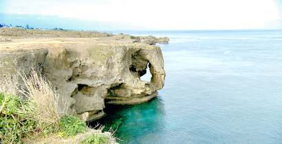 沖縄を代表する景勝地のひとつ。琉球の国王が「万人が座することが出来る草原」と称したことからこの名がついた。隆起サンゴの台地の上には、天然の芝が広がっている。
