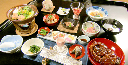 江戸時代から続く東山温泉の老舗旅館。木造建築は、国の登録有形文化財に指定されている。お風呂は自然湧出の源泉かけ流し。夕食には「にしんの山椒漬け」や「こづゆ」など、郷土料理を頂ける。
