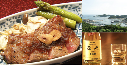 夕食は壱岐の海の幸や壱岐牛を使った料理を頂ける。
