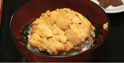 人気の生ウニ丼は、温かい御飯の上に新鮮なウニをたっぷりのせて秘伝のタレで頂く逸品。