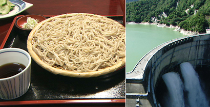 国内一位の高さ約186m、堤頂長約492m、総貯水量約約2億㎡のアーチ式ドームダム。毎秒10トン以上の放水はまさに圧巻。展望台、外階段、新展望広場などが絶好のビューポイントとなり、特に新展望広場では間近に見ることができる。晴れた日には放水によって綺麗な虹が架かり、その美しい眺めも大人気。