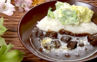 人気の秘密は、まろやかでコクのあるカレーソース。その理由は、牛乳・チーズ・バター・生クリームといった4種類の乳製品をたっぷりと使用しているため。乳製品の風味を生かした、マイルドな味わいは、老若男女問わず大人気。