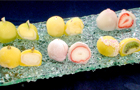 今回は三船オススメの、大阪府吹田市にある「松竹堂」の『フルーツ餅』。旬のフルーツを、白餡とお餅で包んだ見た目にも美しい和菓子。フルーツは産地にこだわり、今のイチオシは徳島産の桃イチゴ。主役はあくまでフルーツということで、白餡は甘くなく上品な味。休日には、行列が出来る有名店。
