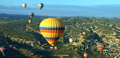 気球の行き先は風任せ。上昇と下降を繰り返しながら、カッパドキアの大地を眺める。