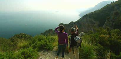 「世界で一番美しい海岸」とも称されるアマルフィ海岸。青い空と海、切り立った断崖と、山沿いに立ち並ぶパステル・カラーのかわいらしい家々とのコントラストは、まさに絶景。世界遺産にも登録されている。