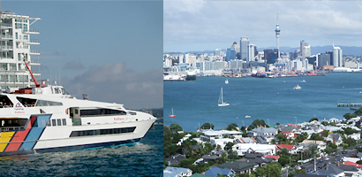 オークランドからハウラキ湾の島々への航路。オークランドのブリマート駅からすぐ。フェリーターミナルからデボンポートまで約12分で到着。