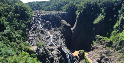 世界遺産に登録された熱帯雨林のわずか数メートル上を、滑るように上空散策できる6人乗りのゴンドラ。カラボニカ駅からキュランダ駅まで約45分の空中の旅を楽しめる。