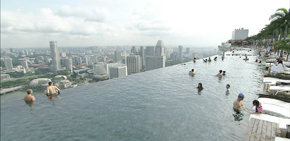 今やシンガポールのアイコン的存在となっている複合型施設。地上55階建てで、下半分が傾斜している最先端設計となっている。また、施設内にはショッピング、カジノ、グルメなど様々な機能が充実しており、ホテルの総部屋数は2560室を誇る。