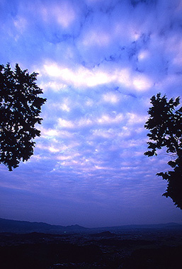 葛城山の向かいの山から落日を待った。 残念ながら、今日は夕焼けとはならなかったが、 頭上で流れていく雲に、一瞬淡い色が灯った。 自然は大らかに動いているようで、 実際はそうではない。 ほんの一瞬にいろいろなことが起こっている。 私たち自身もその自然の一部であり、一瞬のうちに、自分も、 そして自分を取り巻く環境もいろんなことが起こっている。 だから、今というもの、この地球という大きな存在に、 もっと敏感にならないといけないはずだ。