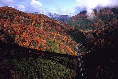 峠のトンネルを抜けると、思わず歓声を上げた。 深い色に染まった出雲の山並みが、眼下に広がっている。 夜に降った雨が朝日に輝き、より深みを増している。 足もとに続く道を抜け、私たちはこれから更にこの山並の奥を目指す。