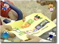 そして、みんなは持ってきたリサイクルカードにシールを貼ってもらいます。 |