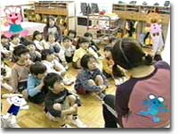 | ここは、滋賀県栗東町にある大宝幼稚園。 実は、ここでは月に一度、園児たちみんなでアルミ缶の回収しているんです。みんなアルミ缶が入った袋を持って、次々にやってきます。なにしろ園児が187人もいる幼稚園ですから、集まるアルミ缶もかなりの量なんです。 |