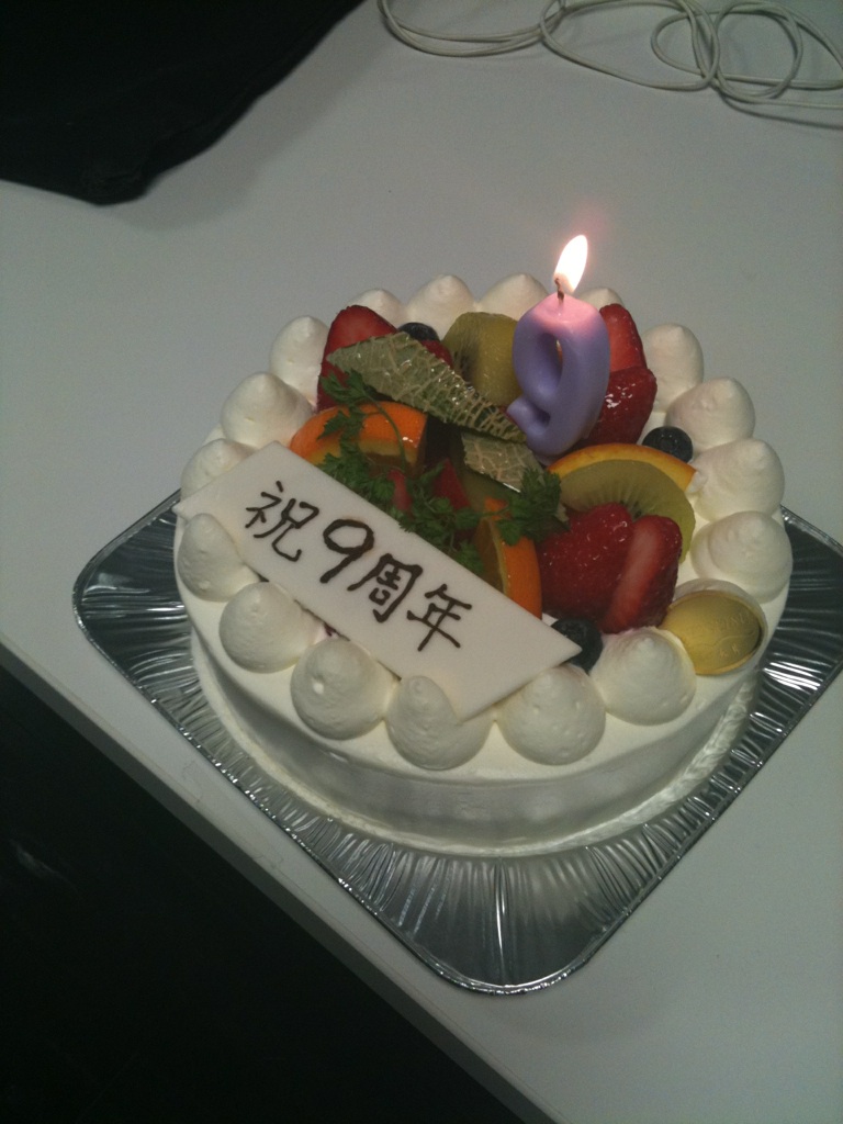 ■実は、昨日・2010年4月20日、久馬さんが所属する人気お笑いユニット、ザ・プラン9が、結成まる9年の記念日を迎えたのです。というわけで、ささやかなサプライズ・パーティーの開催です。キュウ馬さんのプラン9が9年ですからね。すごいすごい。 NEC_0953.jpg