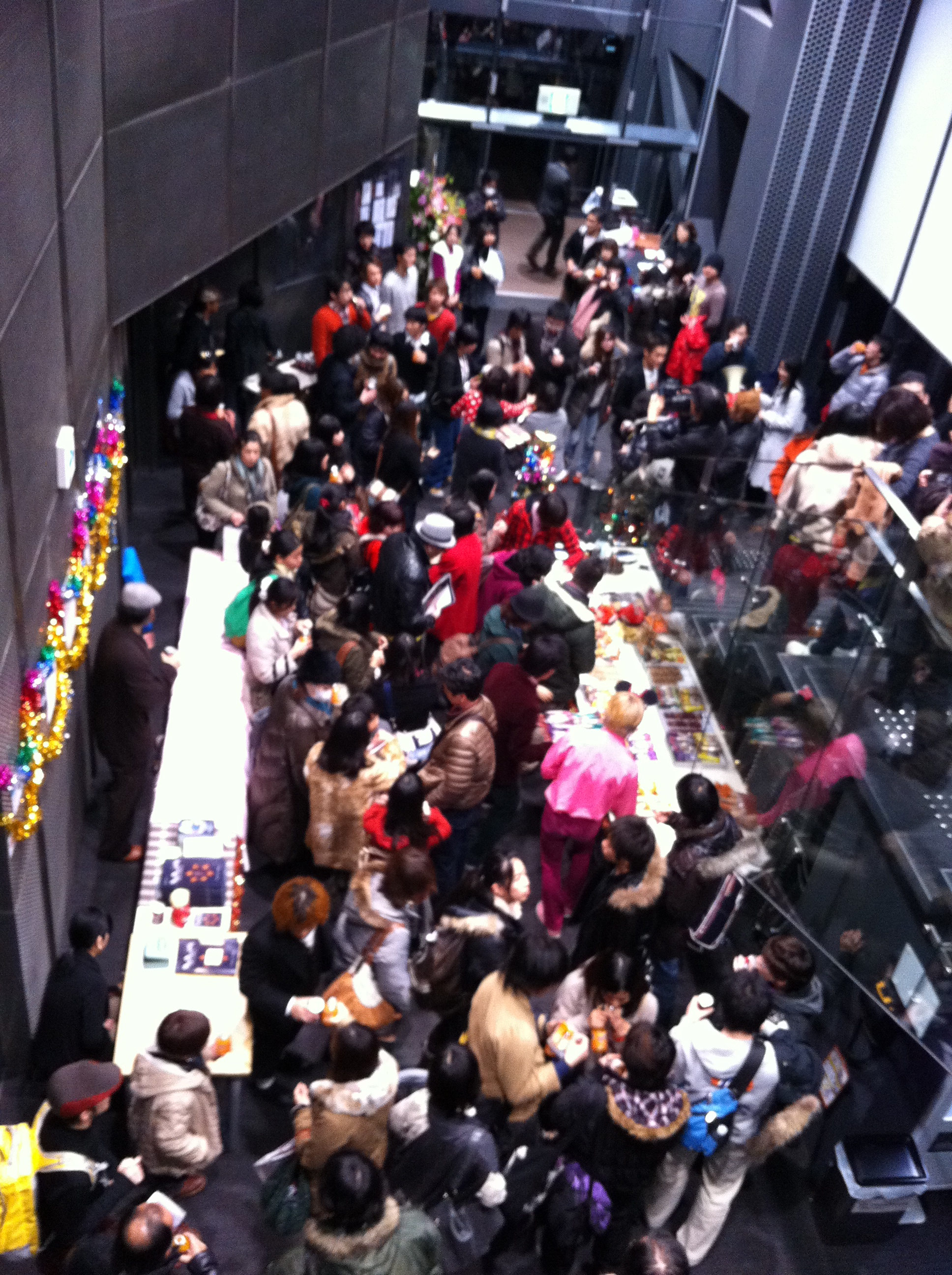 イブ2011full.jpgxmas2011年のクリスマス・イブxmas劇団赤鬼『リトル・ウェンズデイ』ソワレ終演後、おまけの特別ショーや抽選会が終わって、ただ今ロビーにてミニ・クリスマスパーティーの真っ最中ですxmas簡単な飲み物とお菓子ですけどね。同じ芝居を観た人たちが、キャストと一緒になっての歓談ですから、そりゃあ楽しそう。予想以上に多くのお客様が参加されたので、座長・行澤氏はロビー2階まで乾杯の行脚ですxmas イブ2011 001.jpg