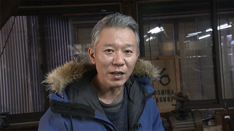 燕三条地域の名物グルメ、燕背脂ラーメンの人気店で腹ごしらえし、工業団地へ。斧とまさかりが専門の工場にお邪魔し、火と鉄、鋼を巧みに操る伝統工芸士のダイナミックな職人技を拝見。西森も勧められるままに鍛造機械のスプリングハンマーを体験し、モノづくり芸人の本領を発揮する。