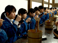 2泊3日で行われるこの研修は、朝4時半からはじまり、座禅や写経などさまざまな修行を行います。入社前に研修を受けた人事部の茶園さんは「食事の時間が一番戸惑った」と言います。4人1組でおひつのご飯を一粒残さず、おかずも残さず綺麗に食べ終えなければならないのですが、一番難しいのは会話が禁じられていること。