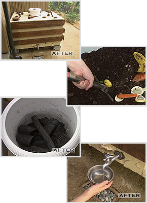 キッチンを裏庭側に出たすぐ脇には、以前の浴槽を使って作られた、生ゴミを分解するコンポストを設置しました。