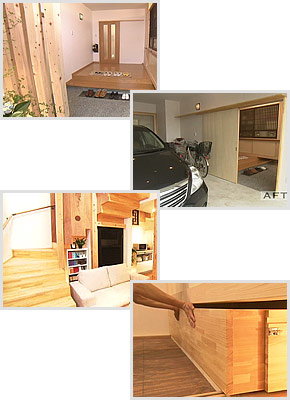 和の風情漂うアプローチと杉の扉は、初めて出来た住宅用の玄関。優しく家族を出迎えます。