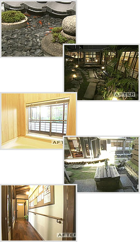 長年、手入れすること無く荒れ放題だった中庭も、「匠」の手によって美しい庭園へと生まれ変わりました。 何年も枯れていた池も蘇り、優雅に泳ぐ金魚の姿は、遊びに来るお孫さんを喜ばせてくれることでしょう。