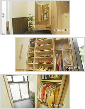玄関を上がってすぐのところには、帰宅してすぐに上着や鞄などがしまえるようにコートクロークが設置されました。もちろん来客時の荷物置き場としても使えるので、荷物の置き場には困りません。