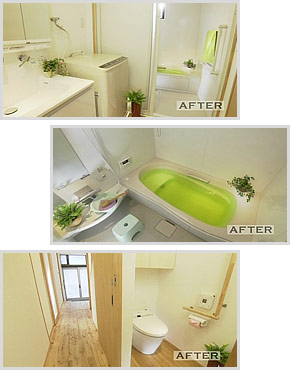 新しくなった脱衣洗面所の奥には、お風呂が。換気窓を高い位置に設けることで、柔らかい光が降り注ぐ暖かいお風呂へと生まれ変わりました。排気管もないのでガス漏れの心配も無くなりました。
