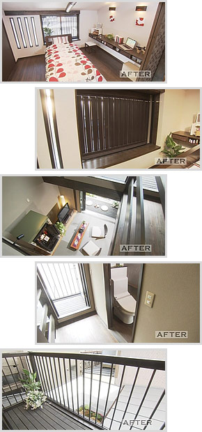 2階の奥にはベランダに通じる廊下が、その一角は吹き抜けとなり真下のリビングの様子が伺えるようになっているのです。同居してお互いの生活空間が分かれても気配は感じ取れるようなりました。