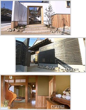 アプローチの先には、17年前に建具職人のおじいちゃんが増築した立派な建物は変わらず残されています。以前と変わらずここがこの家の玄関になっています。